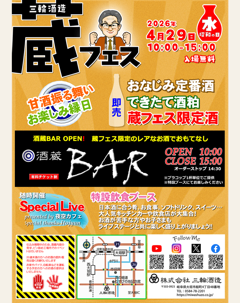 春の恒例となりました「三輪酒造 蔵フェス」。今年は4月29日(水・昭和の日)に開催いたします。